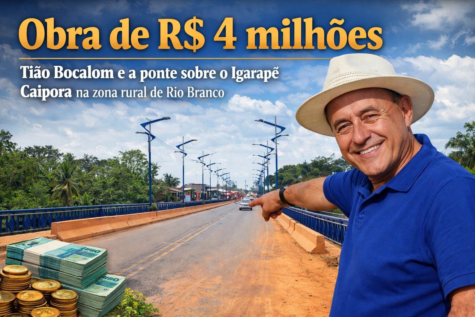 Bocalom entrega ponte do Caipora e encerra décadas de isolamento na zona rural de Rio Branco