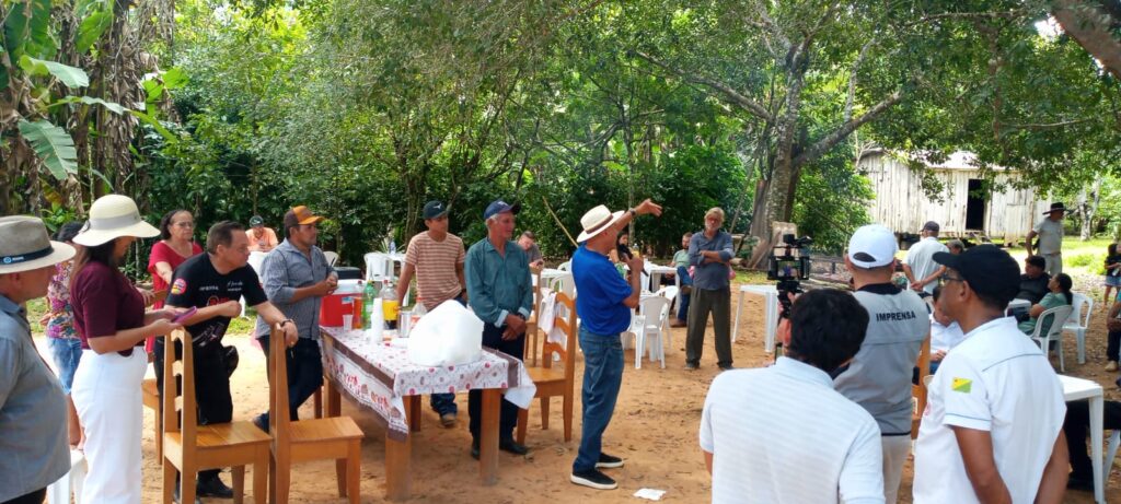 A reunião foi realizada na propriedade de dona Laiz Rodrigues Bispo e do senhor Markuedoubes de Souza Neto, moradores do Ramal do quilômetro 18 da Estrada do Pacífico desde 1980. Ao lado dos filhos, a família construiu sua história de trabalho na pecuária e na produção agrícola, atividades que também sustentam dezenas de outras famílias da região.