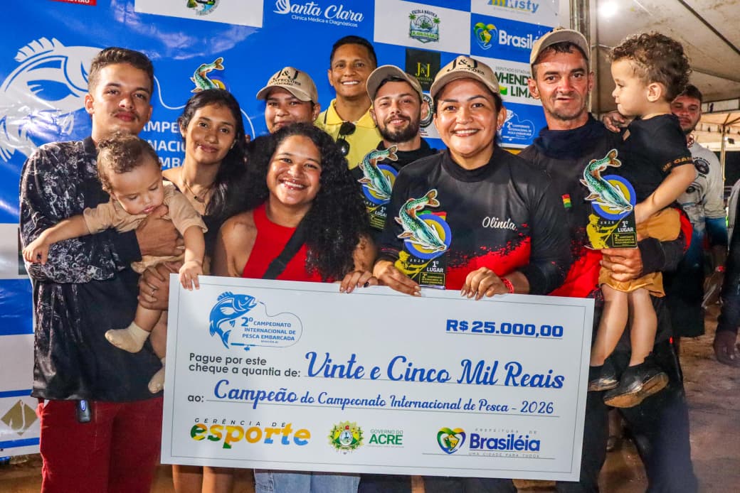 [15:15, 19/04/2026] Fer Oliveira: A grande campeã do campeonato internacional de pesca embarcada de Brasiléia foi a equipe JJ E Cold Beer, que somou 53,61 pontos e garantiu o primeiro lugar com troféus, levando para casa a maior premiação de 25 mil reais.